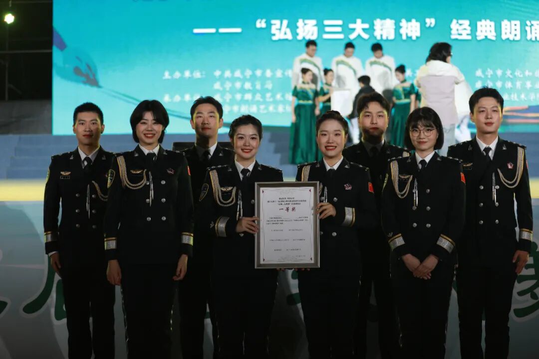 11月4日晚,咸宁市人民广场灯光璀璨、激情涌动,以 “弘扬三大精神” 为主题的经典朗诵会在此隆重举行。市公安局代表队与20支市直单位代表队同台竞技、激烈角逐,最终凭借原创作品《以精神为炬,铸铁军荣光》斩获一等奖。 活动现场热闹非凡,观众席人头攒动。市公安局代表队队员身着整齐的制式警服,警容严整,身姿挺拔,一登场便展现出公安队伍的昂扬风貌。 朗诵时,他们情感张弛有度,时而以慷慨激昂的语调彰显公安铁军的使命担当,时而用深沉婉转的声线传递为民服务的赤诚情怀,将文字背后的精神力量转化为直抵人心的视听冲击,赢得了观众和评委的阵阵掌声。 经典的旋律余音绕梁,精神的力量历久弥新。市公安局代表队用艺术的形式诠释了“人民公安为人民”的初心使命,让“三大精神”真正浸润警心、凝聚力量。